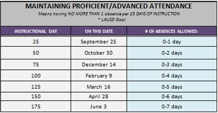 Reference the chart to look at the attendance goals!