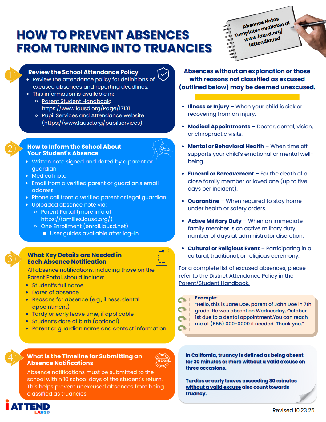 - Have a school calendar handy to know what days to be in school